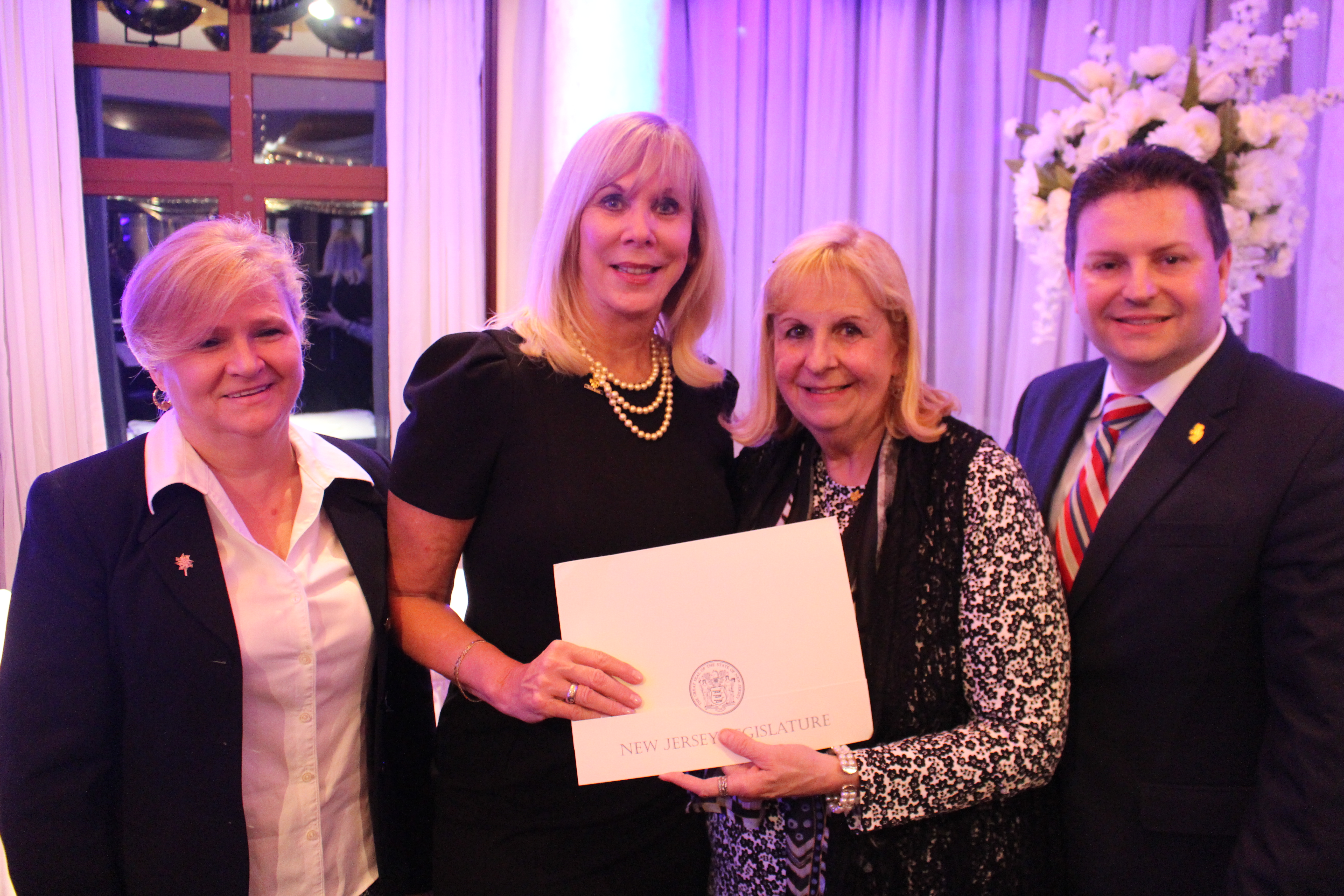 Karen DeChristopher, BettyLou DeCroce, Carol Tiesi and Robert Peluso. Carol was receiving a acknowledgement from the New Jersey Legislative