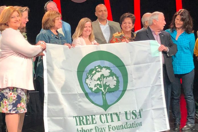 Members of the Board of Education, Township Council, Parsippany Environmental Committee and Mayor Michael Soriano proudly displays the new banner received Jack Shaurt, Tree City USA