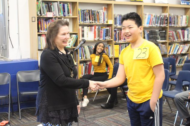 After sixteen arduous and intensive rounds, this year’s school champion was a seventh grader, Jason Hao, who embraced the winning title with the word “humongous.”